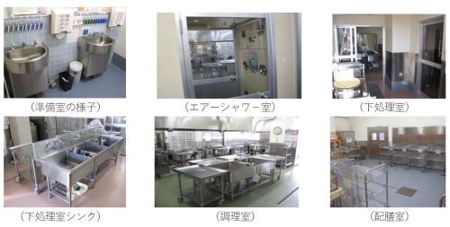 ※1. 細菌の繁殖を防止するため、床に水が落ちない構造の施設・設備、機械・器具を使用し、床が乾いた状態で作業ができるシステムのこと。また、外部からの細菌や異物の侵入を防ぐため、食材の検収を行う「検収室」、野菜類の洗浄や皮むき等を行う「下処理室」、食材の裁断や調理・配膳を行う「調理室」、食器や調理器具を洗う「洗浄室」と、作業工程に合わせてそれぞれの部屋が独立しています。