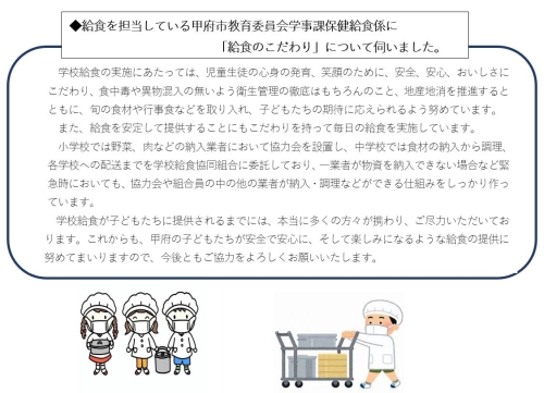 ■甲府市の小学校・中学校の給食の献立や食材はどのように決められているかご存知ですか。